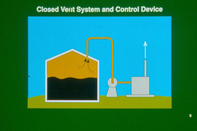 USEPA建議的最佳控制技術:浮動頂蓋;液面10cm處的揮發性有機物﹤300 ppm(以甲烷表示);密閉式固定覆罩及氣體回收系統,其回收及破壞總和效率需達95%以上。